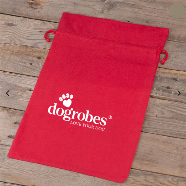Made from 100% cotton with our Dogrobes logo printed in white, this practical bag is unlined and measures approximately 30 cm wide x 40 cm high (33–33.5 cm high when filled).